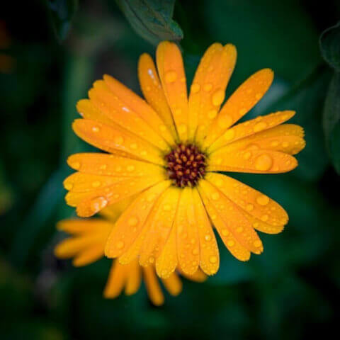 Calendula officinalis appartient à la famille des Asteraceae. Elle est adoucissante, émolliente, décongestionnante et anti-inflammatoire. C’est la plante de la peau par excellence. On l’utilise en externe, en baume ou en macérât huileux, pour ses propriétés cicatrisantes et apaisantes. En interne, on fait infuser les capitules séchés afin de lutter contre les inflammations des muqueuses, les troubles hépato-biliaires, les douleurs menstruelles, les rhumatismes, les insuffisances veineuses.